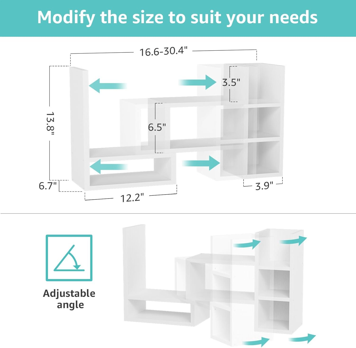 - Adjustable Size: Easily expandable for more space for documents and decor.